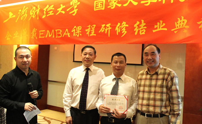 中金国泰集团总裁郑建龙先生、副总裁汤秀章女士获得EMBA结业证书。