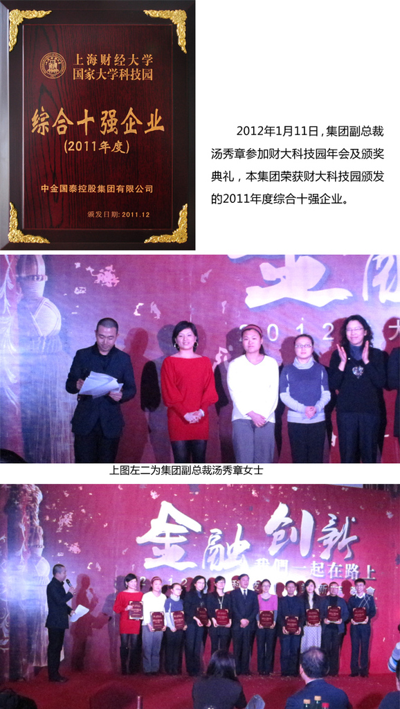 集团副总裁汤秀章参加财大科技园年会及颁奖典礼,本集团荣获年度综合十强企业