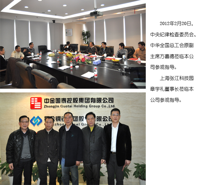 中央纪律检查委员会原委员、中华全国总工会原副主席方嘉德、张江科技园章学礼董事长莅临本公司参观指导