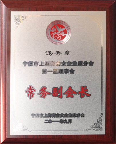 汤秀章副总裁本月被推选为宁德市上海商会女企业家分会第一届理事会常务副会长。