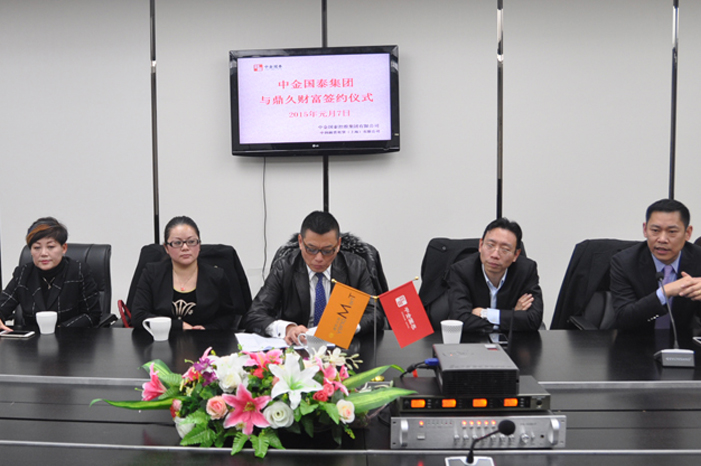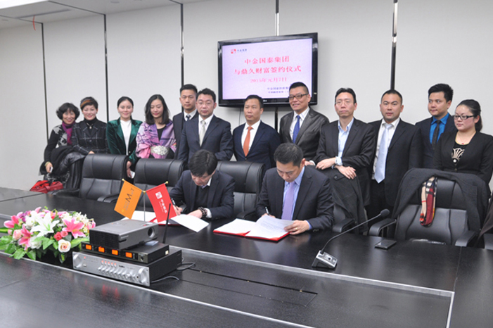 新年伊始,万象更新。2015年元月7日,中金国泰集团公司与鼎久财富就集团旗下财富管理经营业务合作签字仪式在中金国泰总部举行。中金国泰集团副总裁李琪中先生和鼎久财富总裁宋浩田先生分别代表双方在合作协议上签字,集团董事长兼总裁郑建龙先生率集团高管及财富公司相关负责人与鼎久财富公司的相关高管一起参加和见证了签约仪式。