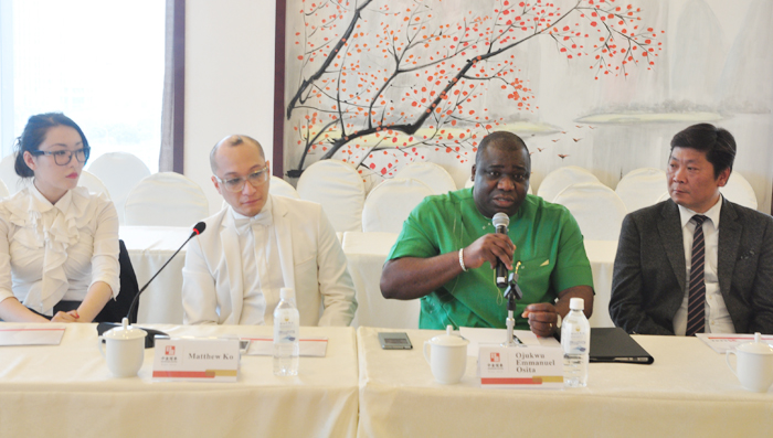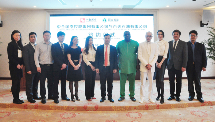 百夫石油公司Ojukwu Emmanuel Osita主席诚挚感谢中金国泰集团的热情接待,他表示,非常高兴来到位于上海陆家嘴金融中心的中金国泰集团与各位会谈。同时,他重点介绍说,百夫石油有限公司是代表尼日利亚政府开展海外项目合作的企业,Ojukwu Emmanuel Osita主席是受尼日利亚总统的委托专程来上海完成本次合作协议的签署任务,可以肯定,尼日利亚总统非常重视此次合作协议的达成,他表示,此刻总统先生正在等候我们合作成功的好消息。