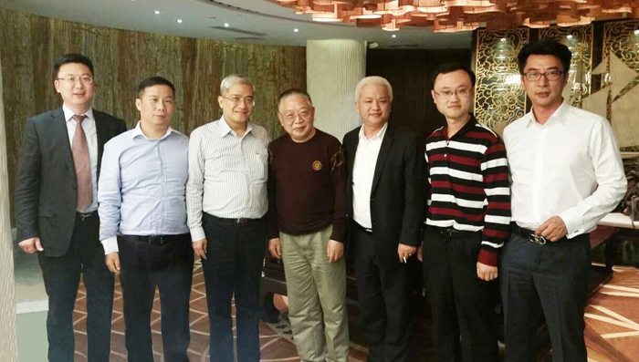 (著名经济学家郎咸平教授、上海交通大学国际金融研究院管金生院长、工信部中国互联网金融研究院常务副院长龚文、副院长李奎、新华商金融控股集团总裁郝正明先生等与中金国泰集团总裁合影)