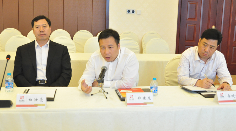 郑建龙总裁代表中金国泰对李登良副总经理一行来访表示欢迎,并向客人介绍了中金国泰集团的产业发展概况,同时表示愿意在新能源、供应链金融和大宗商品贸易三个方面与对方探讨合作路径。